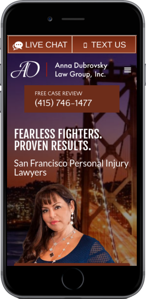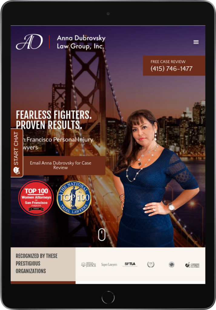 As a Civil Justice Award recipient, Anna sought to distinguish her Personal Injury firm from others in the highly-competitive San Francisco-Bay Area market by showcasing their successes, tenacity and experience, without undermining their primary mission of giving a voice to the wrongly injured so they can focus more on the recovery process and less on the burden of how to finance it.